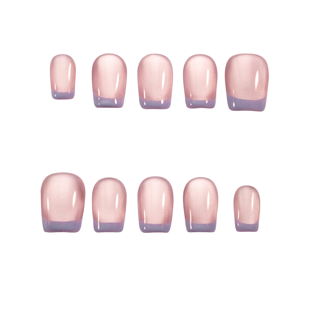 Un rose fondant et transparent comme une gelée, ourlé d'un French lilas qui évoque la crème onctueuse d'un dessert sorti du frigo. Le tout est enveloppé d'une brillance soyeuse et subtile. Sans fioritures, la composition dégage une tendresse naturellement sucrée et réconfortante.